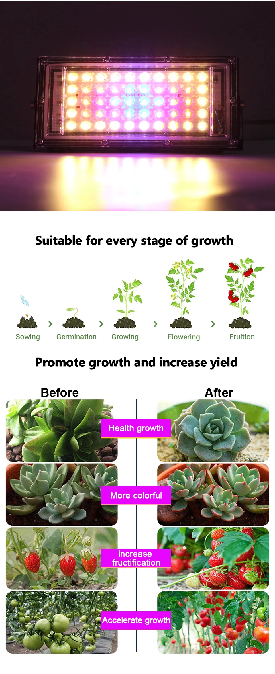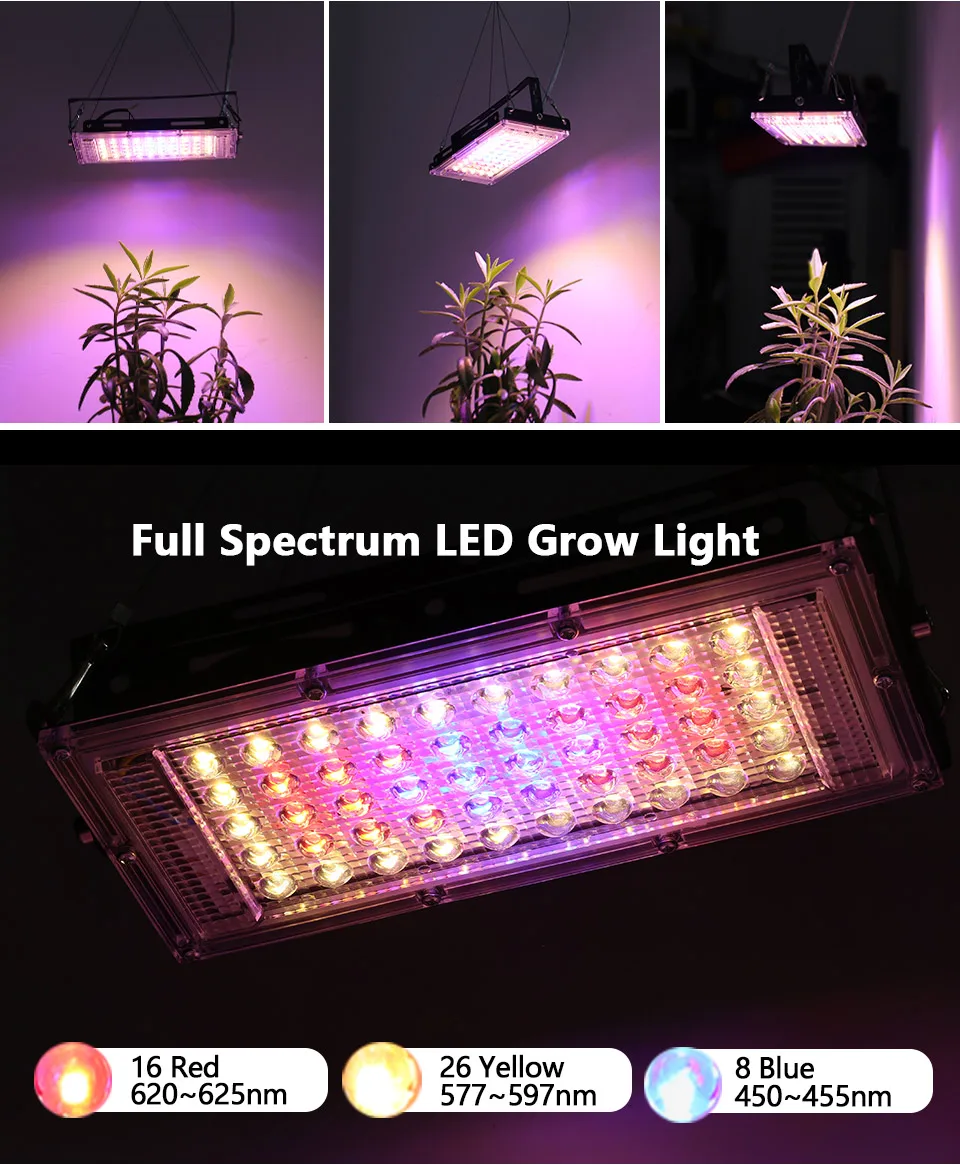 50W 220V Led Grow Light Plant Hydroponic Lamp LED Full Spectrum For Greenhouse Seeds Flower Hydroponic Plant Growth Lighting
